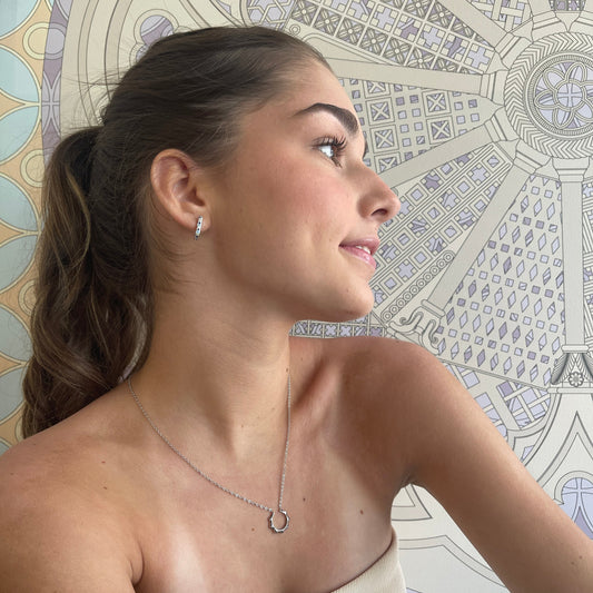 GIOVE MIO Cadena Luna Creciente Turquesa en Plata 925 Bañada en Oro Amarillo de 18Kt.