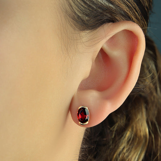 GIOVE MIO Studs en Oro Amarillo de 14Kt con Granates.