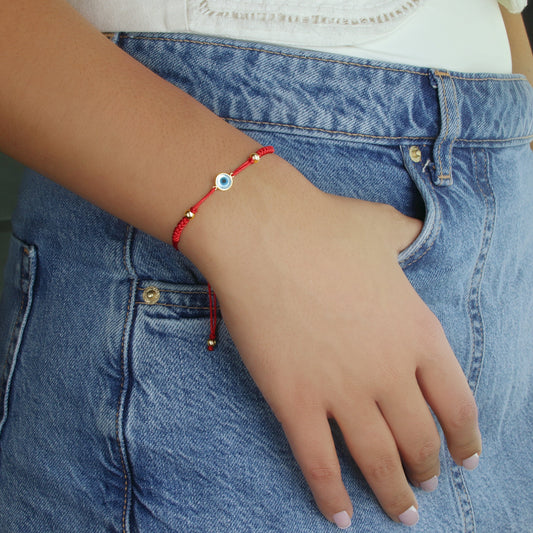 GIOVE MIO Pulsera de Cordon con Ojo Turco en Oro Amarillo de 14Kt.