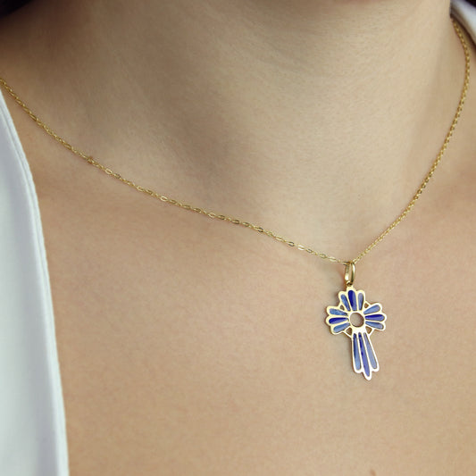 GIOVE MIO Dije de Cruz con Esmalte Catedral en Oro Amarillo de 18Kt.