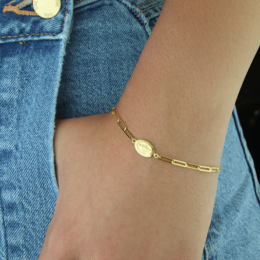 GIOVE MIO Pulsera de Cadena con Medalla de la Virgen Milagrosa en Oro Amarillo de 14Kt.