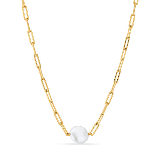 GIOVE MIO Cadena con Dije de Perla en Plata 925 Bañada en Oro Amarillo de 18Kt con Peridoto.