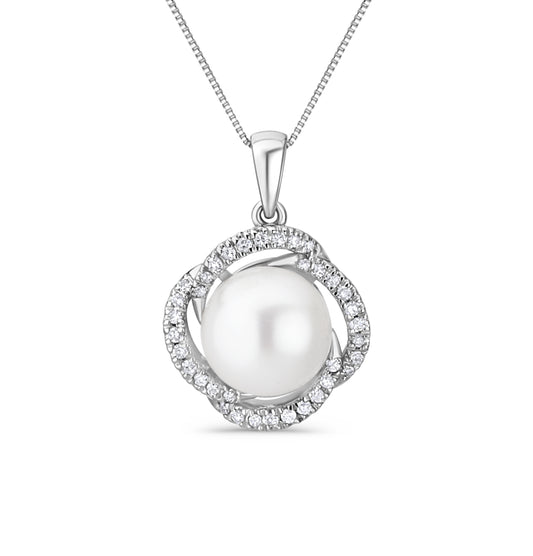 GIOVE MIO Dije en Oro Blanco de 14Kt con Perlas Cultivadas Akoya y Diamantes Naturales.