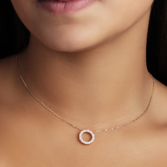 GIOVE MIO Cadena con Dije Circular y Gemas en Oro Amarillo de 14Kt con Ópalos y Zafiros Blancos.